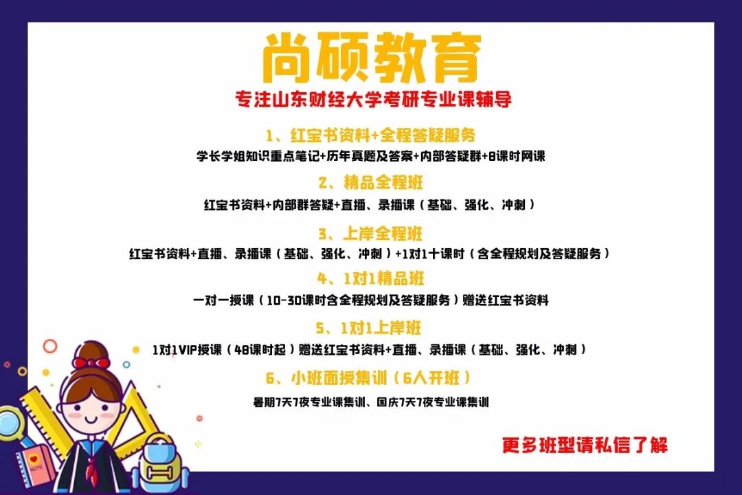 为了保证辅导质量,我们将只专注于山财这一所学校的考研辅导工作。因为我们深信,只有首先专一,才可能专业。考研辅导是一项专业性很强的工作,不同学校命题风格差异很大,像其他考研辅导机构那样用统一的模式来辅导报考不同学校的考研学子,是我们不认可的方式。我们所有的考研辅导系列工作,将会紧扣山财考试特点。