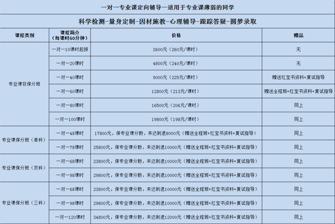 "科学检测——量身定制——因材施教——心理辅导——全程跟踪——圆梦录取"。
